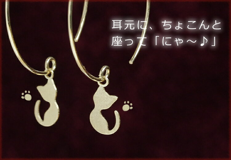 K18カラーゴールドフープピアス・ムーンパティス シンプルなのに愛おしすぎる・・! 耳元でちょこんと座って揺れる猫ちゃんは 鏡を見るたびに、あなたにやすらぎを与えてくれます・・ 猫のモチーフが一番かわいく、一番分かりやすいように、 あえて地金だけのフープピアスをおつくりしました・・! 地金のみでおつくりしているので、あわせる服を選ばない優秀ピアス♪